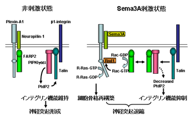 Rac-GEF作用を持つFARP2はSema3Aの細胞骨格再構築および細胞接着抑制を介する神経突起退縮作用を制御する。