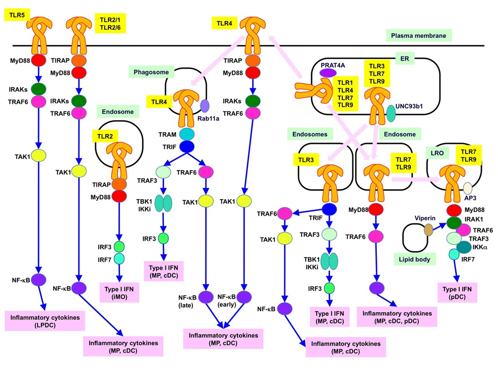 Toll-like receptors (TLRs) are germline-encoded pattern recognition receptors (PRRs) that play a ...